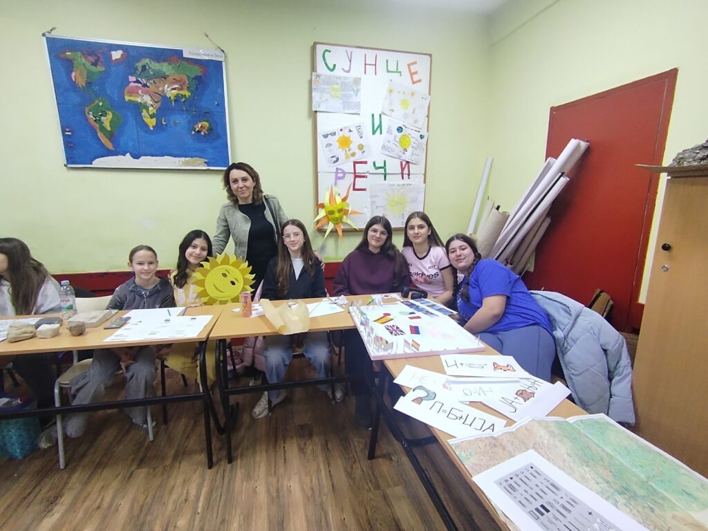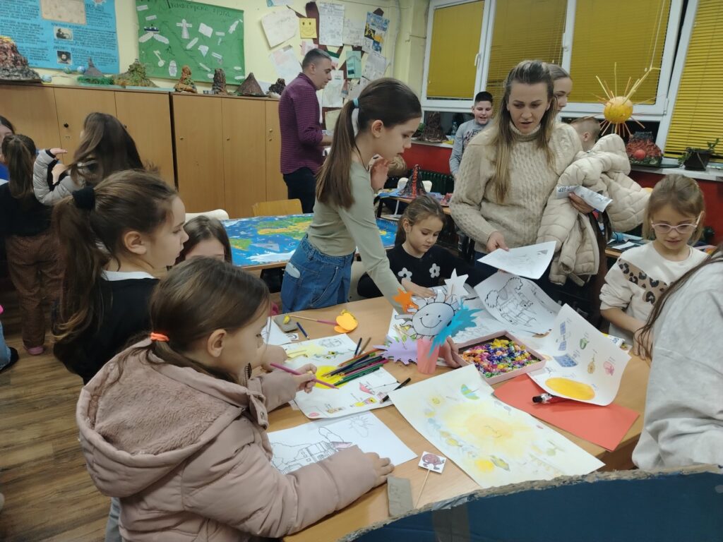 У кабинету за српски језик и књижевност ученици су са наставницом музичке културе Јеленом Пантовић свирали на инструментима и певали занимљиве посебно припремљене песме.