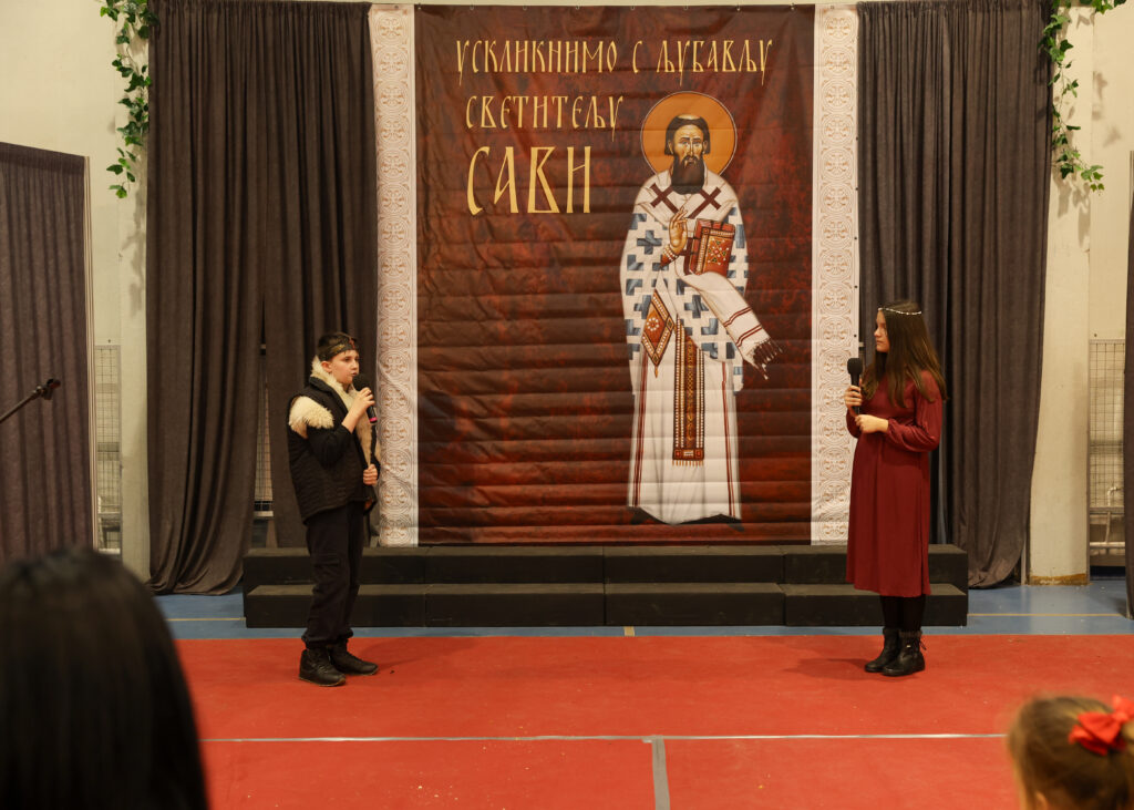Након извођења Светосавске химне, присутнима се обратила директорка школе, Јелена Стојановић Богдановић, подсетивши да је Свети Сава својом једноставном, али дубоком мудрошћу, објединио веру, знање и људскост, поставивши основе не само просвете, већ и моралног и духовног напретка нашег народа.