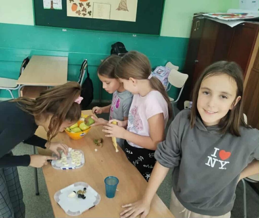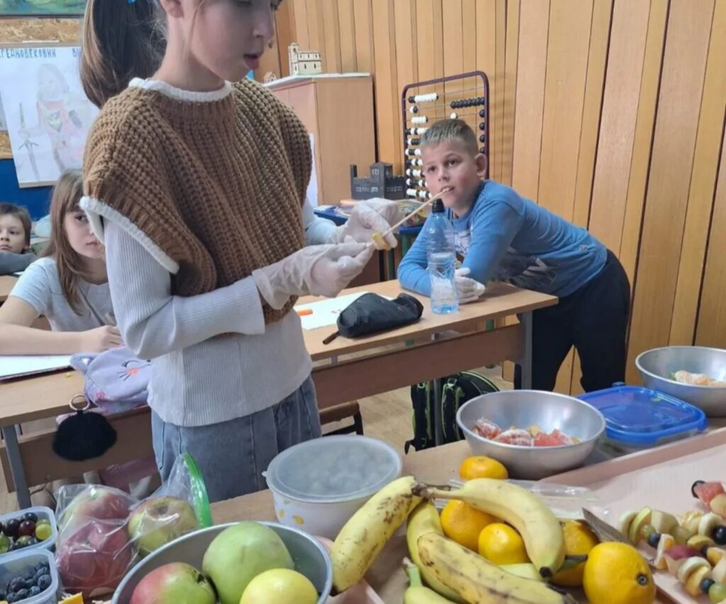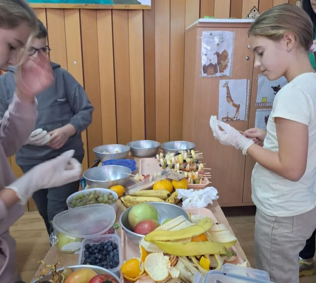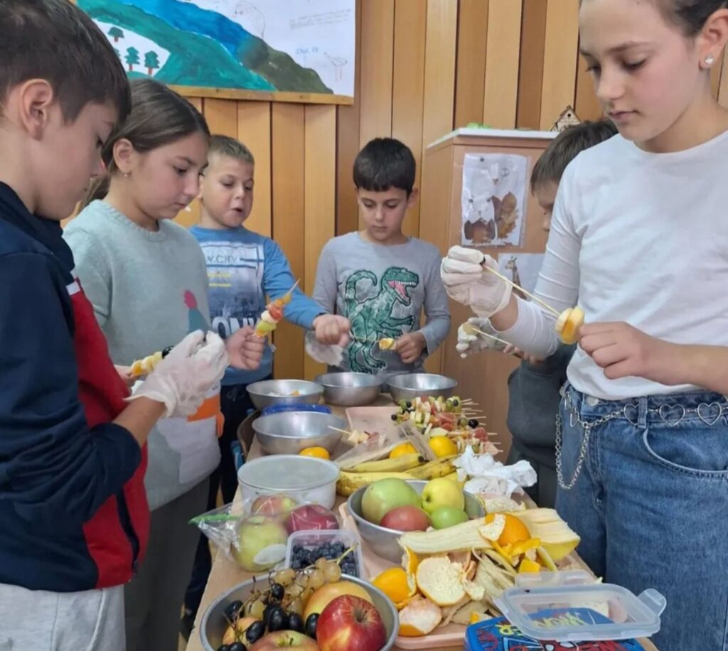 У оквиру обележавања „Дана здраве хране“, ученици су кроз практичну и креативну активност правили воћне ражњиће од воћа које су сами донели од куће.