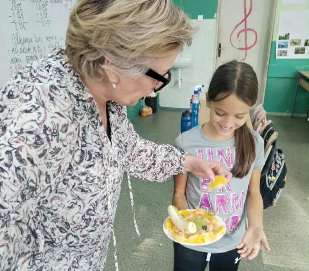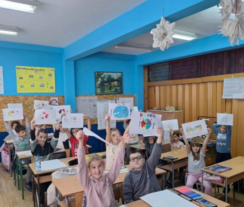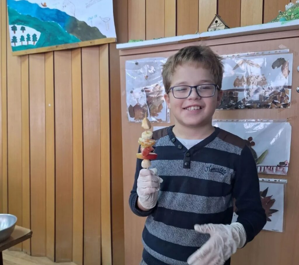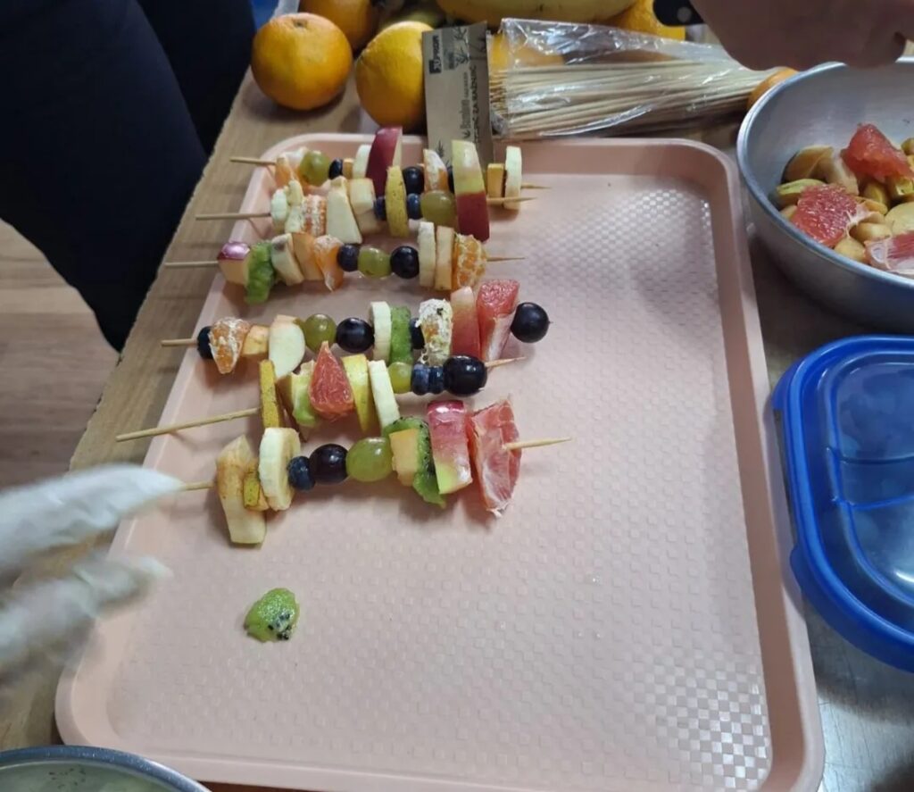У оквиру обележавања „Дана здраве хране“, ученици су кроз практичну и креативну активност правили воћне ражњиће од воћа које су сами донели од куће.