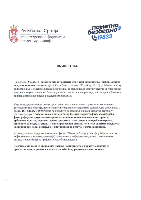 Уредбе о безбедности и заштити деце при коришћењу информационокомуникационих технологија